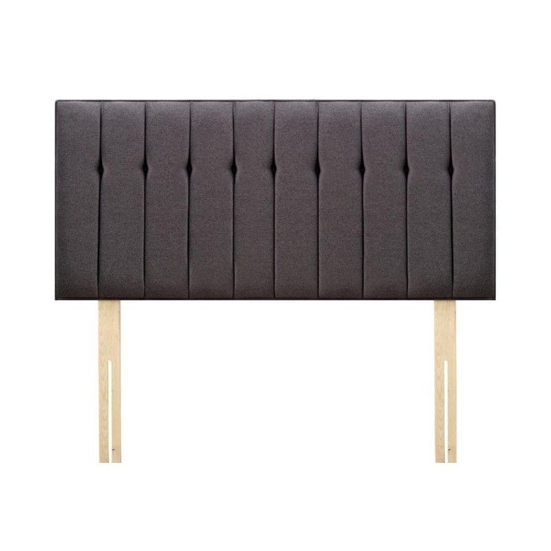 The Javea strutted upholstered headboard offers a stylish vertical lined design with two rows of tufted buttons, making it a perfect centrepiece in any bedroom setting.